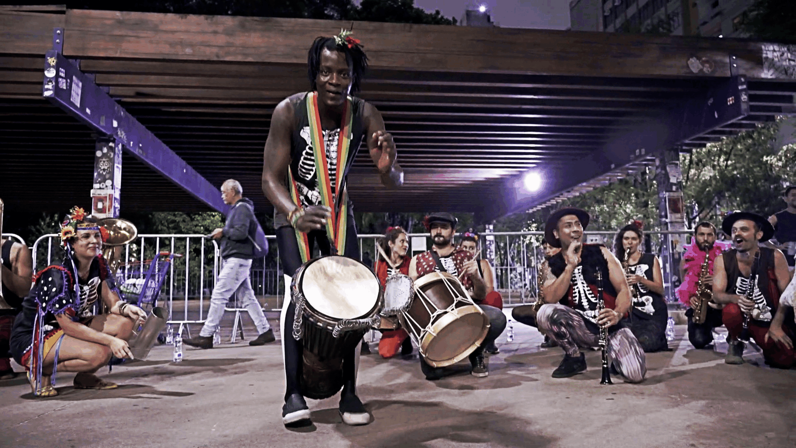 O que artistas africanos que chegam ao Brasil nos últimos anos carregam consigo na travessia? Como dialogam as diásporas africanas – a nova diáspora criativa e a que fez do Atlântico um cemitério? Que palcos são ocupados, construídos, preenchidos com as performances dos artistas que atravessam o oceano? Ancestralidades atualizadas em performances que constroem um presente afropolitano em uma metrópole em que é necessário ser atrevido, colorir o cinza. São Palco – Cidade Afropolitana apresenta a cidade de São Paulo como um meta-palco ocupado por artistas do Togo, Moçambique, República Democrática do Congo e Angola, entre outras nações africanas, em diálogo com a população brasileira e suas aberturas, contradições e tensões.